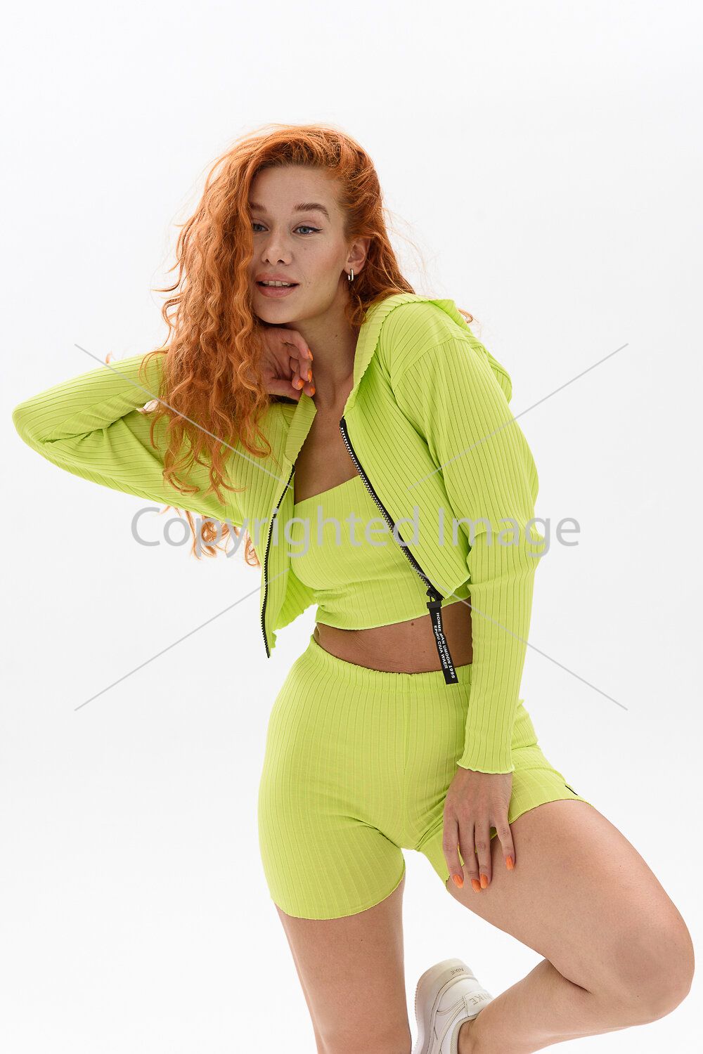 Women's crop top is made of elastic pleasant to the body knitwear noodles universal suitable for walking, fitness, beach holidays. It looks great as a separate element, or in combination with a jacket, sports bomber jacket, or shirt.